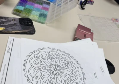 Durante la semana se realizaron actividades diarias significativas: un tablero de emociones para reconocer estados emocionales, pintura de lienzos y alcancías para activar la creatividad, y dinámicas de desconexión mediante juegos de mesa, Nintendo Wii y coloreo de mandalas que fomentaron un clima de confianza y empatía.